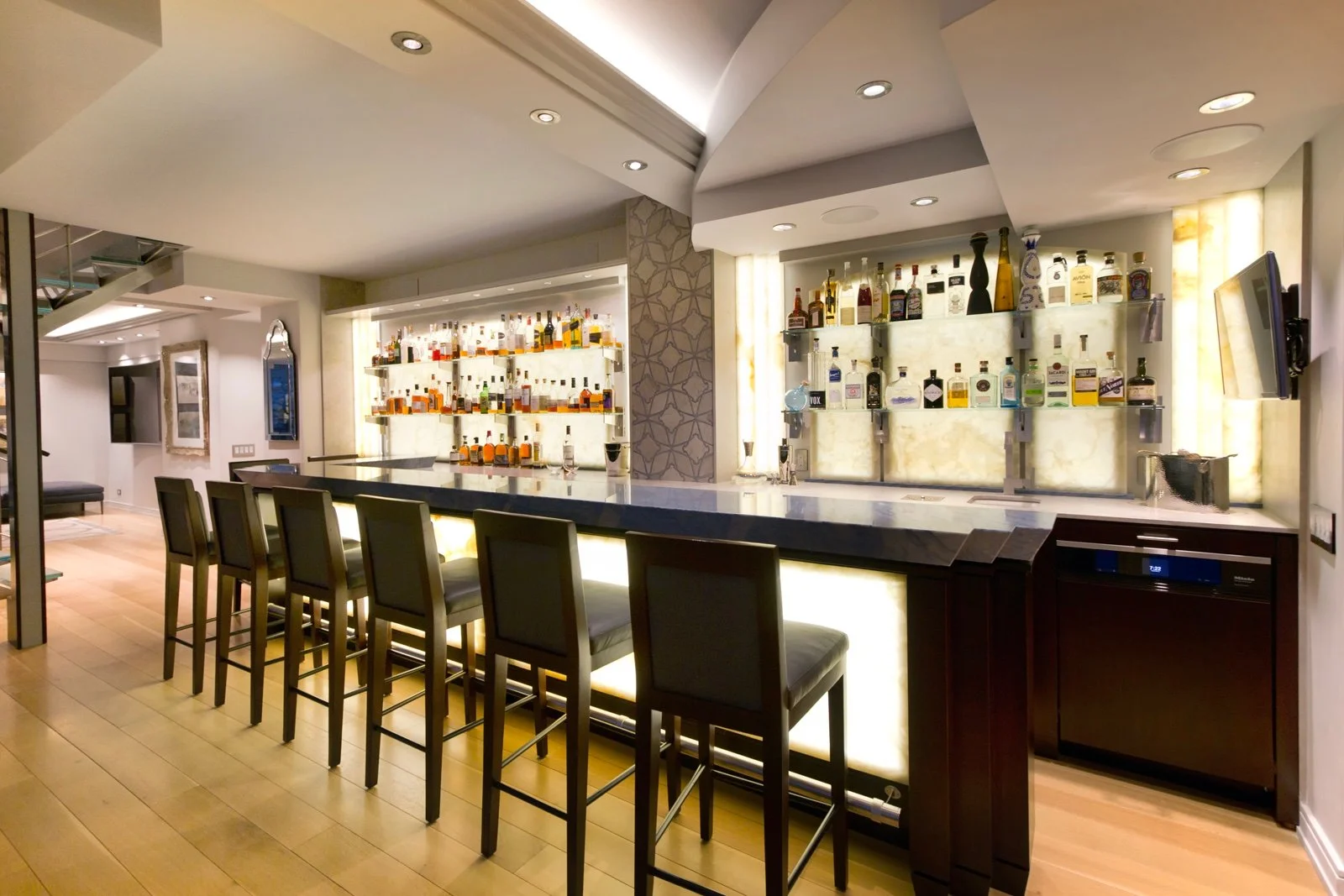 Private Residence. A two story Modern Penthouse with wrap around terrace Upper West Side, Manhattan. New York City.. Architecture, interiors, custom cabinetry, custom furniture, and furniture selection. With Frederick Cox Architect, P.C.
